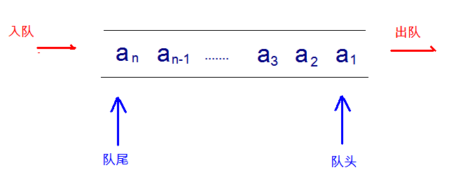 - 先进先出(即,存进去的元素,要在后它前面的元素依次取出后,才能取出该元素)。例如,小火车过山洞,车头先进去,车尾后进去;车头先出来,车尾后出来。